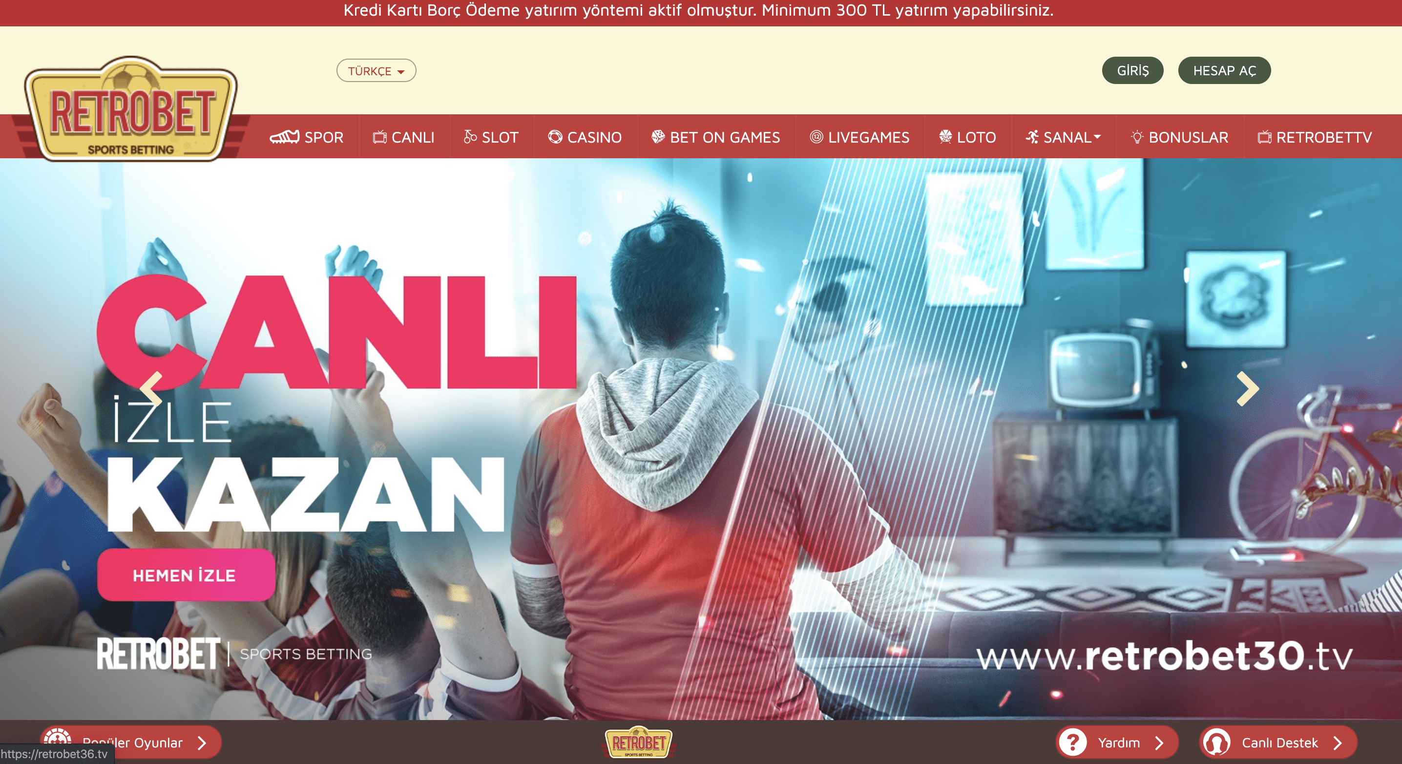 Bunların haricinde ilk yarı ve ikinci yarı maç sonuçlarına tahminlerde bulunarak canlı bahis oynayabiliyorsunuz. Futbol karşılaşmalarına canlı bahis yapabildiğiniz benzer biçimde basketbol maçlarına canlı bahis yaparak yüksek paralar kazanabilirsiniz. Canlı bahis oynamak isteyen bahisçilerin ilk adresi olan Retrobet her zaman bahis severlere canlı canlı para kazandırıyor. Kolay ve ücretsiz bir şekilde siteye hemen üye olun ve canlı bahis oynamanın keyfini yaşayarak para kazanın.